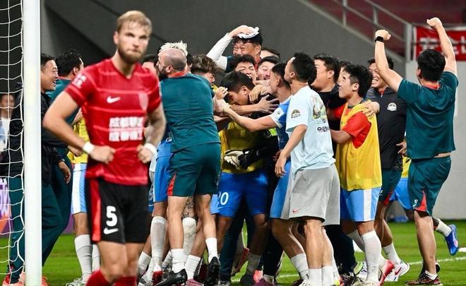 本轮唯一翻车的争冠球队是成都蓉城,面对本赛季曾在联赛和足协杯双杀他们的河南队,成都蓉城又一次掉了链子。虽然成都队在开场不久,就由严鼎皓主罚任意球破门,早早就取得了1球的领先,但是河南队通过下半场的疯狂反扑,由钟义浩和何超先后破门,不可思议般地将比分逆转为了2-1!被逼到悬崖边的成都队此后发起了潮水一般的猛攻,不过面对河南队众志成城的防守,他们根本找不到太好的破门办法,最终河南队爆冷以2-1战胜了成都蓉城,完成对成都队赛季三杀的同时,也提前终结了对手夺冠的梦想。